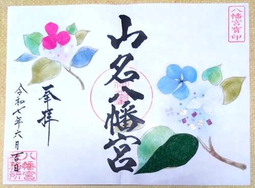 昨年咲いた紫陽花を押し花にしてはり付けてある御朱印!